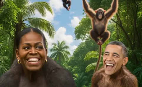À la toute fin de la vidéo, pendant environ deux secondes, un montage montre les visages souriants de Barack et Michelle Obama incrustés sur des corps de primates, dans un décor de jungle. Tôt vendredi matin, la publication avait recueilli plus de 3 500 mentions « J’aime » sur Truth Social.