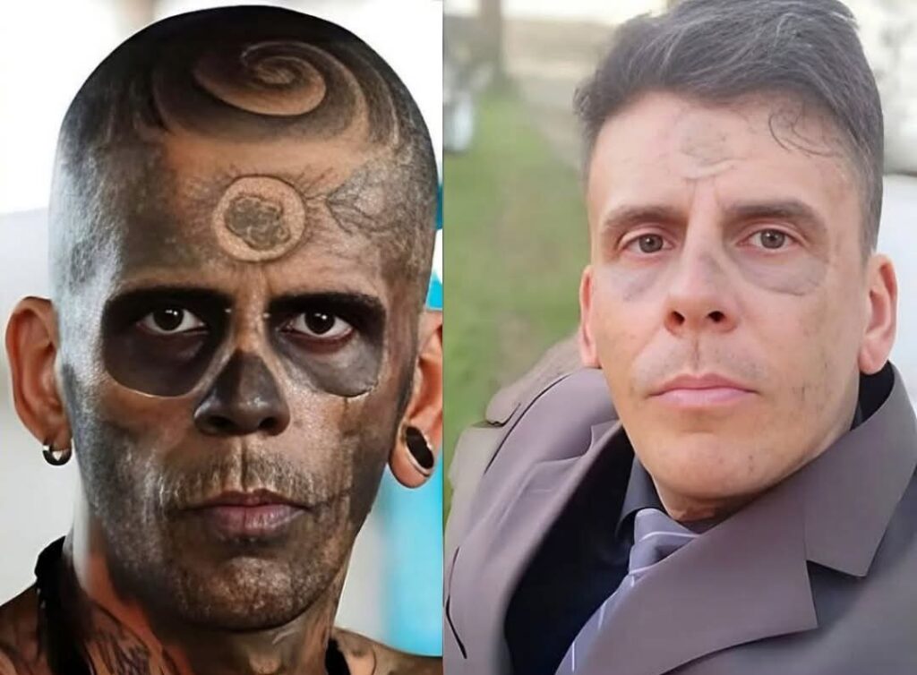 Leandro de Souza est l’une des figures marquantes du monde du tatouage au Brésil. A seulement 35 ans, il a entamé une transformation radicale de sa peau après deux décennies de tatouage. En effet, Connu pour être « l’homme le plus tatoué du Brésil », avec pas moins de 170 tatouages couvrant 95 % de son corps, il a pris la décision de tous les faire effacer au lazer.